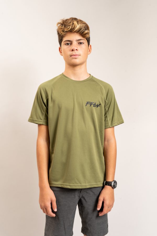 – חולצת אימון מבית FTLV. – זהו הדגם "Chest", המגיע בצבע ירוק. – גזרה נוחה המתאימה לריצות ואימונים אינטנסיביים.