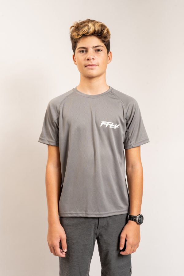 – חולצת אימון מבית FTLV. – זהו הדגם "Header", המגיע בצבע אפור. – גזרה נוחה המתאימה לריצות ואימונים אינטנסיביים.