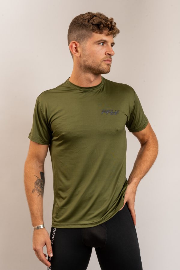 – חולצת אימון ACTIVE מבית FTLV. – זהו הדגם "Shark Attack", המגיע בצבע ירוק זית. – גזרה נוחה המתאימה לריצות ואימונים אינטנסיביים. – בד אוורירי וקליל, בעל מגע קטיפתי.