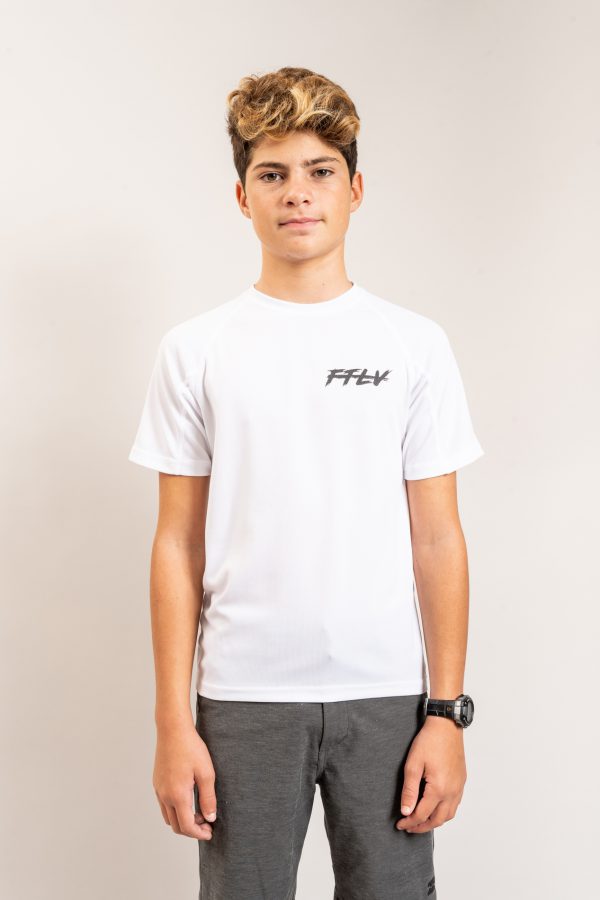 – חולצת אימון מבית FTLV. – זהו הדגם "Shark Attack", המגיע בצבע לבן. – גזרה נוחה המתאימה לריצות ואימונים אינטנסיביים.