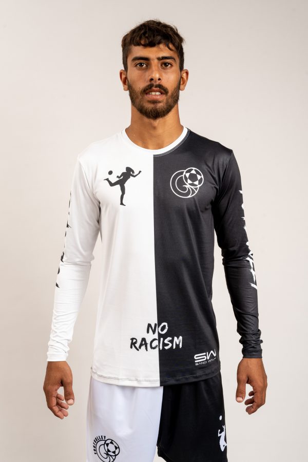– חולצת אימון ארוכה מבית FTLV בשיתוף עם המותג הברזילאי Sand Walk. – זהו הדגם "לא לגזענות" בצבעים שחור ולבן. – גזרה קלאסית בעלת פתח צוואר עגול. – בנוי בגזרה נוחה לכל סוגי הריצות והאימונים. – בד קליל ונושם המונח קרוב לגוף, כך ששום דבר לא יפריע לתנועה שלכם.
